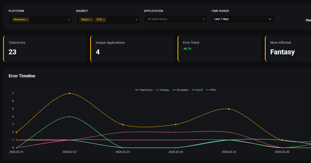 A self-hosted error monitoring system for games/apps. Receives error reports from devices, intelligently groups similar errors, and provides real-time dashboards and configurable email alerts.
